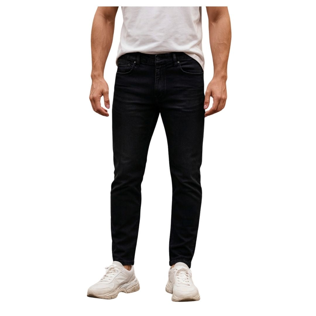 El básico imprescindible para el armario masculino. Estos jeans ofrecen un corte entallado que abraza suavemente la pierna sin ser demasiado ajustado, brindando una silueta moderna y definida. El diseño en color negro es perfectamente versátil y combina bien con zapatillas deportivas, botas o zapatos de vestir informales, ideal para la oficina o el fin de semana. Tiro medio para un ajuste clásico y cómodo. Mezclilla de alta calidad. Diseño clásico de 5 bolsillos (dos delanteros, dos traseros y un bolsillo pequeño para monedas). Bragueta con botón y cremallera de metal. Ideal para: looks casuales y semiformales, uso diario que requiere comodidad y libertad de movimiento, combinación con zapatillas deportivas, camisetas y camisas Oxford