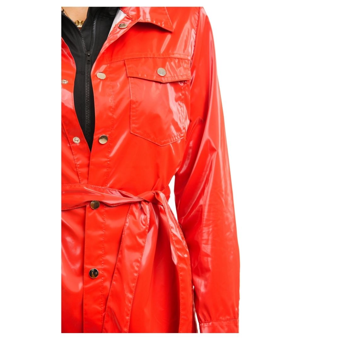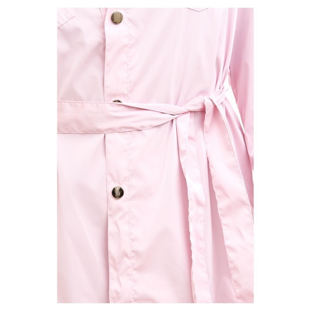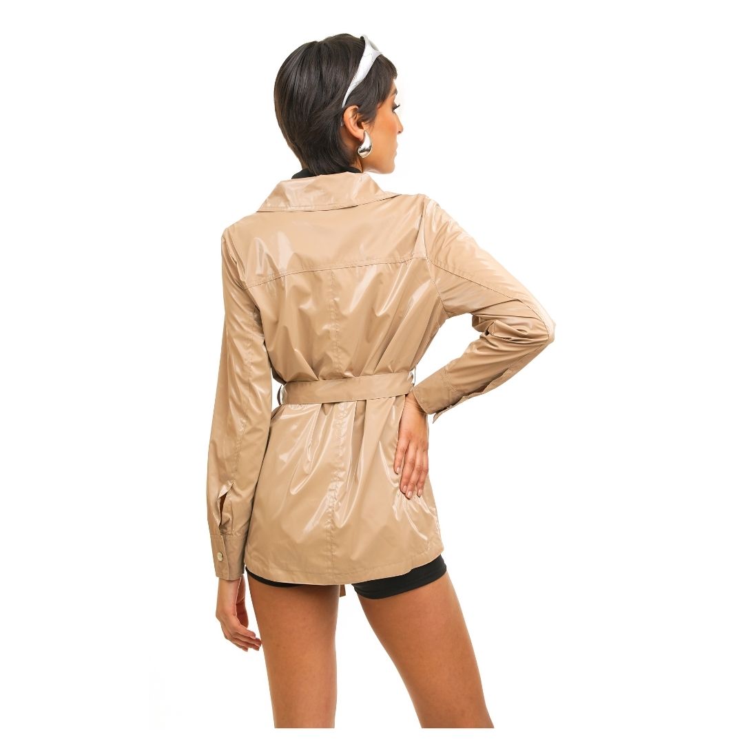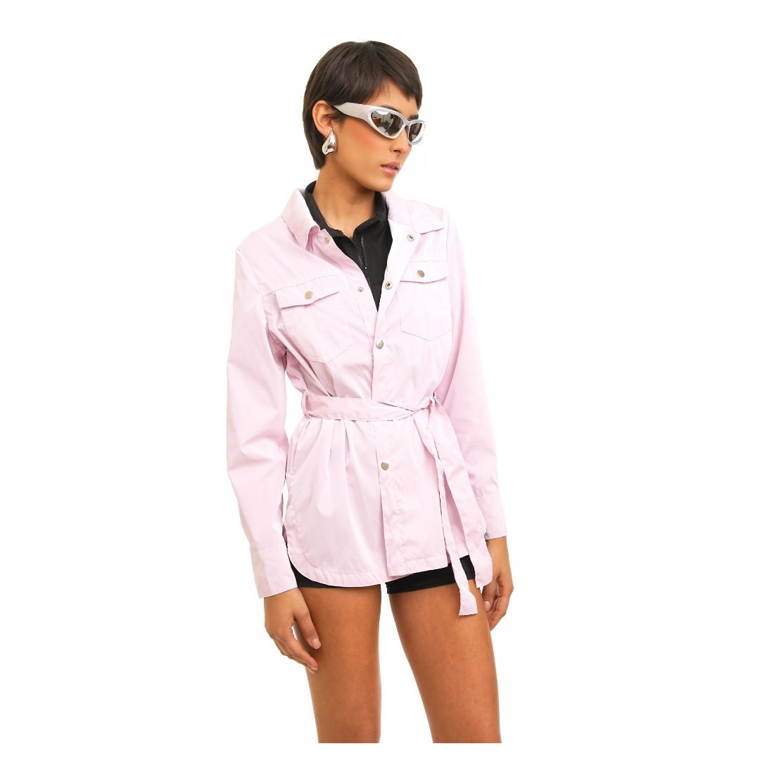 Diseño elevado con una tela suave y discretos botones metálicos. Incluye cinturón para ceñir la cintura, creando una silueta femenina y elegante. Dos bolsillos de parche con solapa y cierre de botones en el pecho añaden un toque práctico. Los puños abotonados te permiten ajustar el ancho de las mangas o llevarlas enrolladas. Perfecto para usar sobre camisetas o blusas cortas durante el clima de transición.