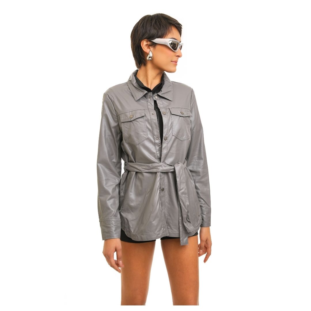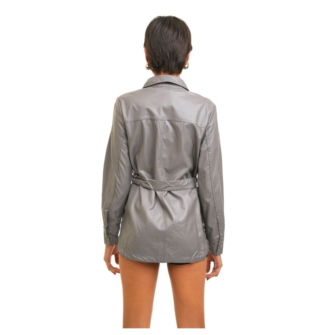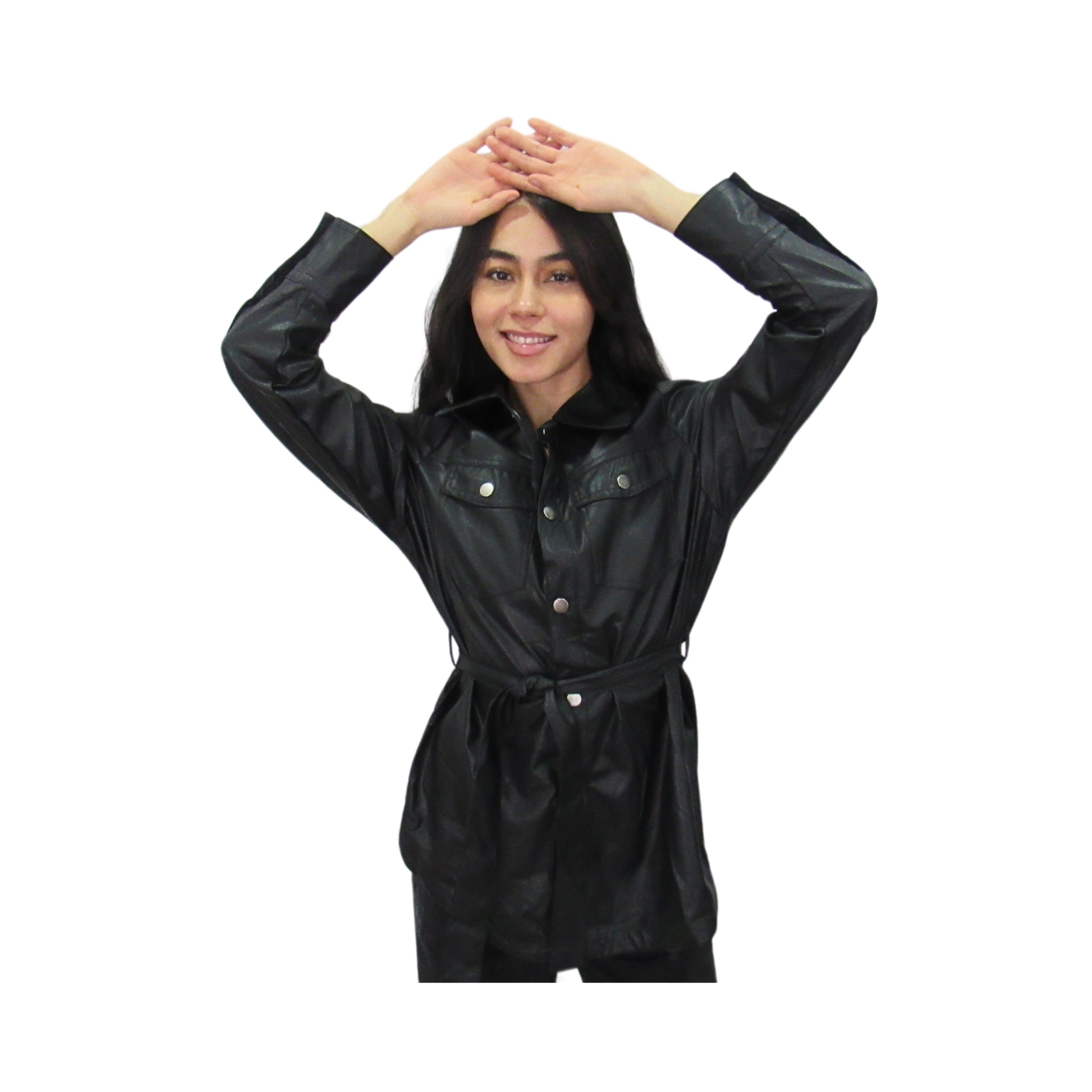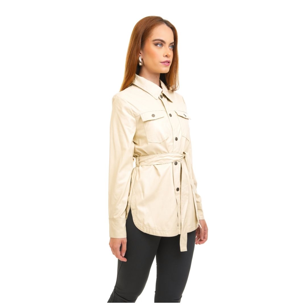 Diseño elevado con una tela suave y discretos botones metálicos. Incluye cinturón para ceñir la cintura, creando una silueta femenina y elegante. Dos bolsillos de parche con solapa y cierre de botones en el pecho añaden un toque práctico. Los puños abotonados te permiten ajustar el ancho de las mangas o llevarlas enrolladas. Perfecto para usar sobre camisetas o blusas cortas durante el clima de transición.