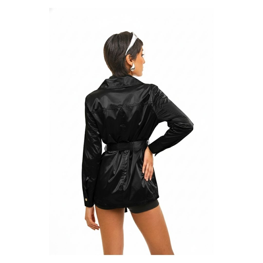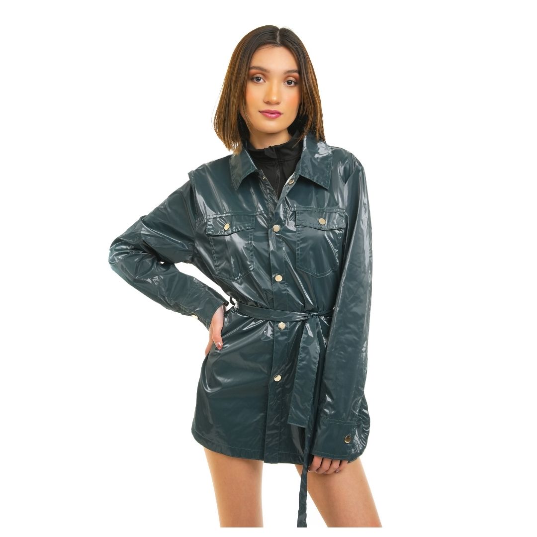 Diseño elevado con una tela suave y discretos botones metálicos. Incluye cinturón para ceñir la cintura, creando una silueta femenina y elegante. Dos bolsillos de parche con solapa y cierre de botones en el pecho añaden un toque práctico. Los puños abotonados te permiten ajustar el ancho de las mangas o llevarlas enrolladas. Perfecto para usar sobre camisetas o blusas cortas durante el clima de transición.