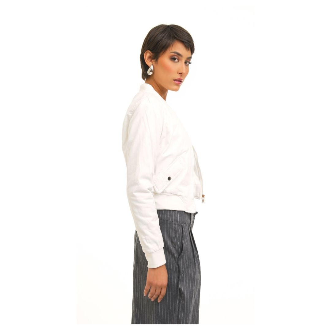 Chaqueta bomber, silueta moderna que se ciñe a la cintura con elástico. Puños elásticos: evitan corrientes de aire. Cuello bomber: cuello corto acanalado. Estilo callejero y juvenil. Ideal para completar outfits con jeans de cintura alta. Protección, comodidad y estilo urbano, todo en una sola prenda. Diseñado para acompañarte en tus aventuras al aire libre.