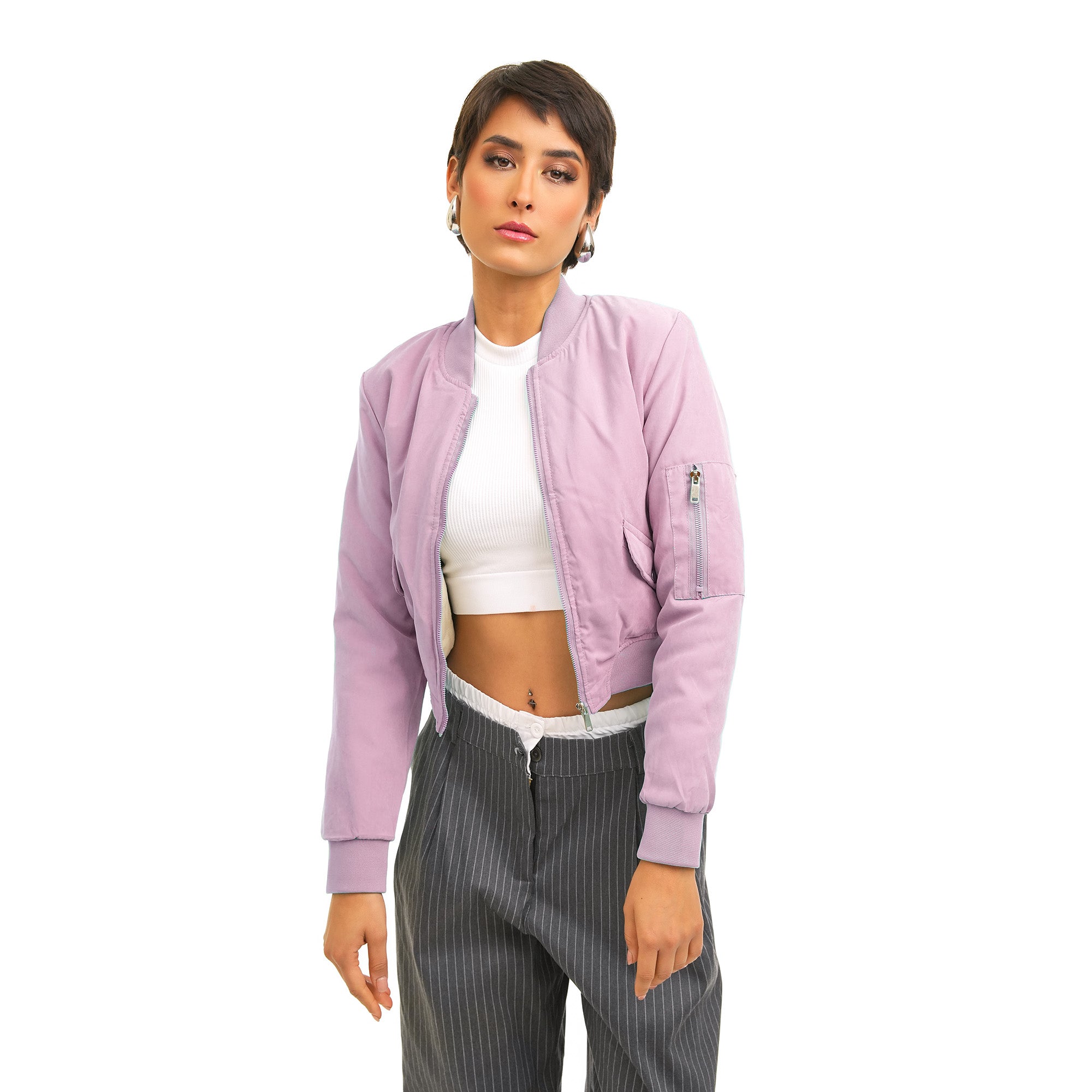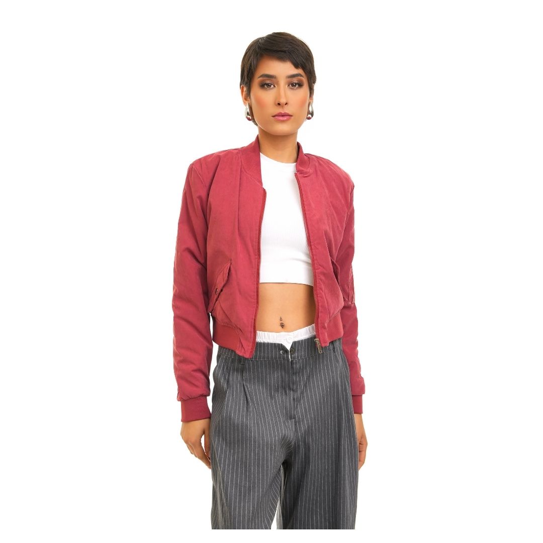Chaqueta bomber, silueta moderna que se ciñe a la cintura con elástico. Puños elásticos: evitan corrientes de aire. Cuello bomber: cuello corto acanalado. Estilo callejero y juvenil. Ideal para completar outfits con jeans de cintura alta. Protección, comodidad y estilo urbano, todo en una sola prenda. Diseñado para acompañarte en tus aventuras al aire libre.