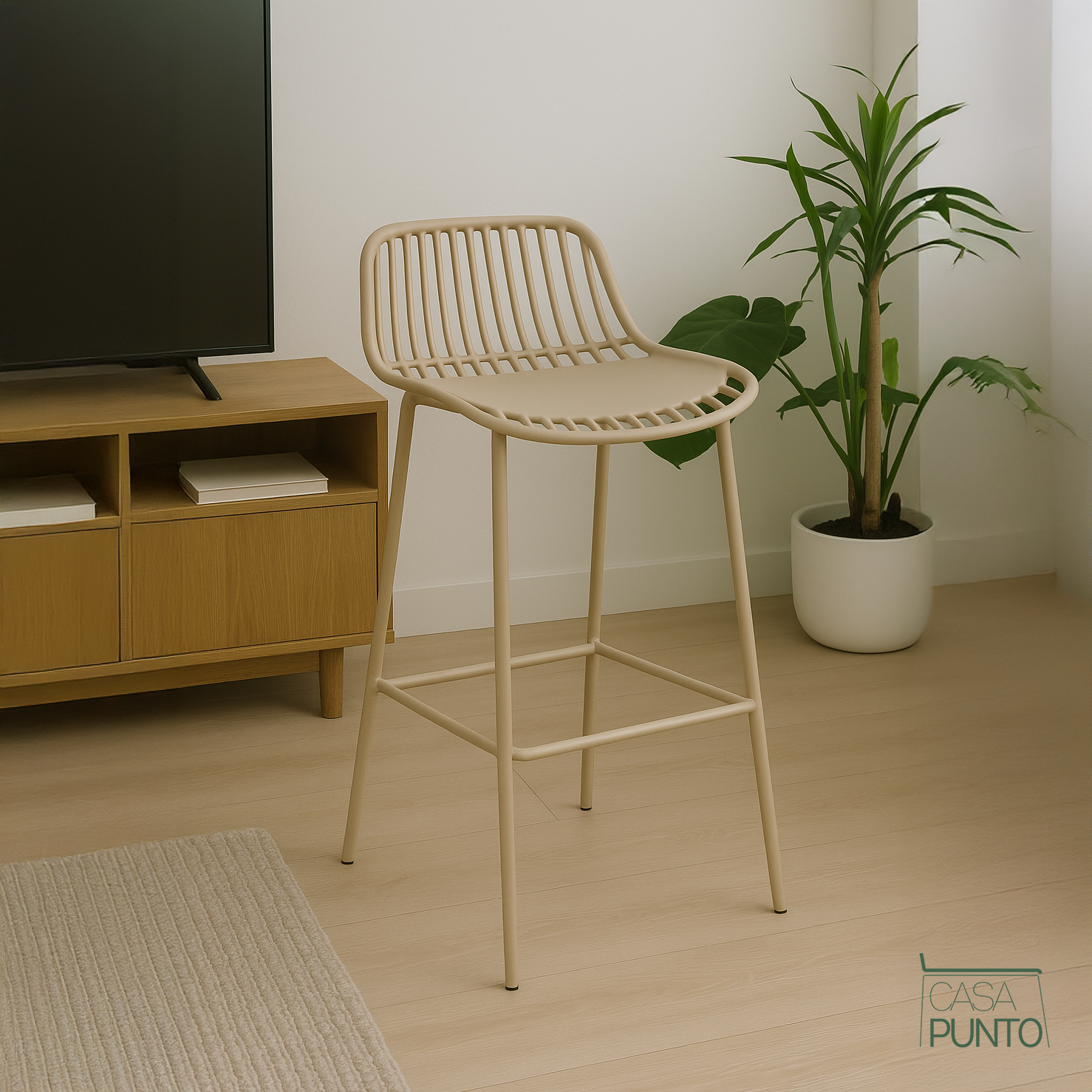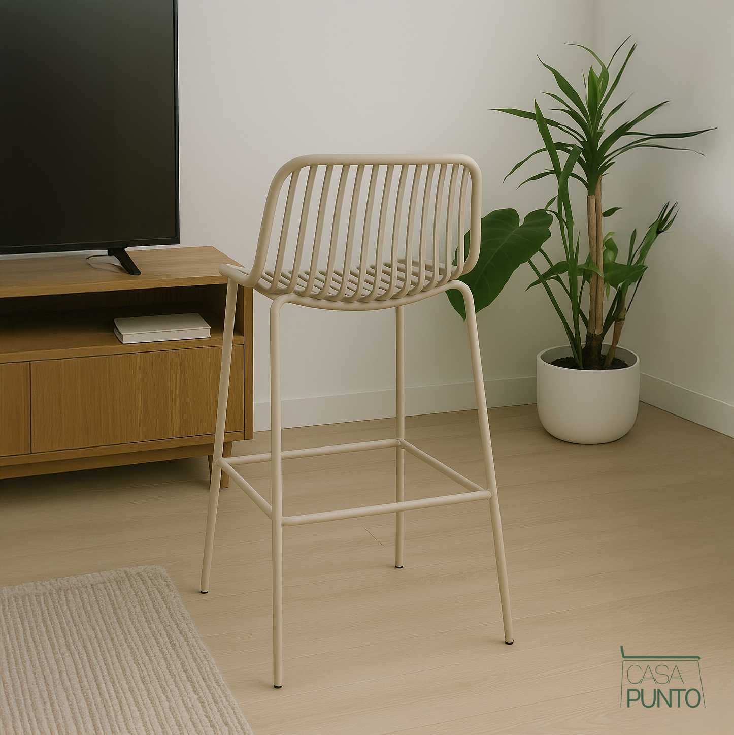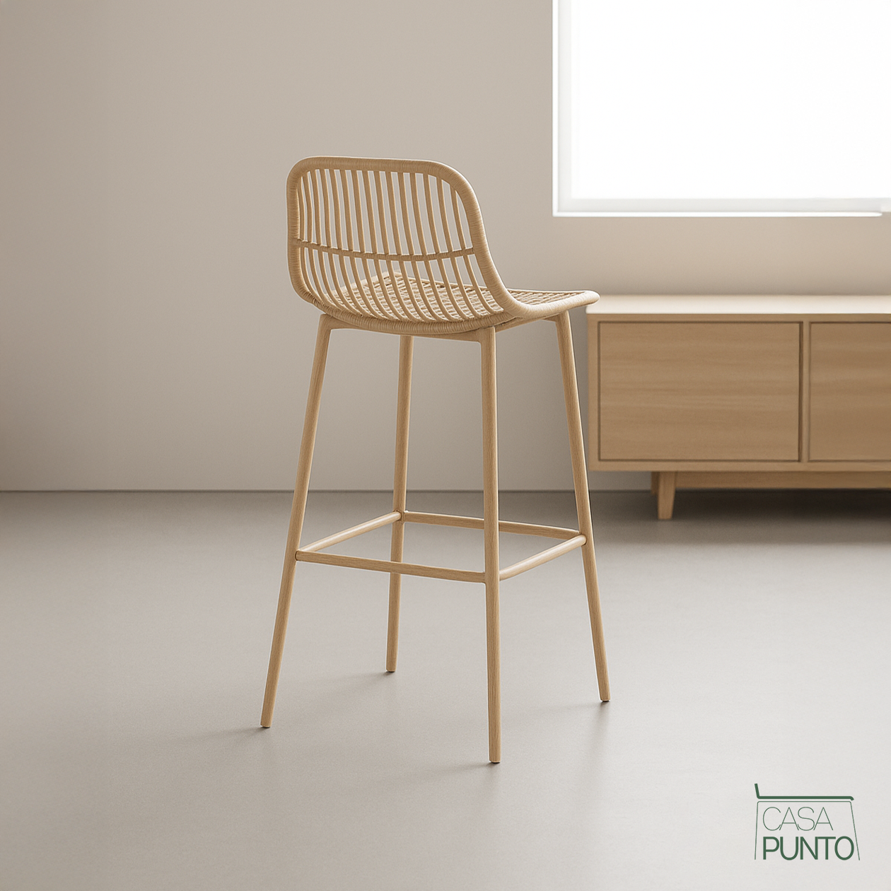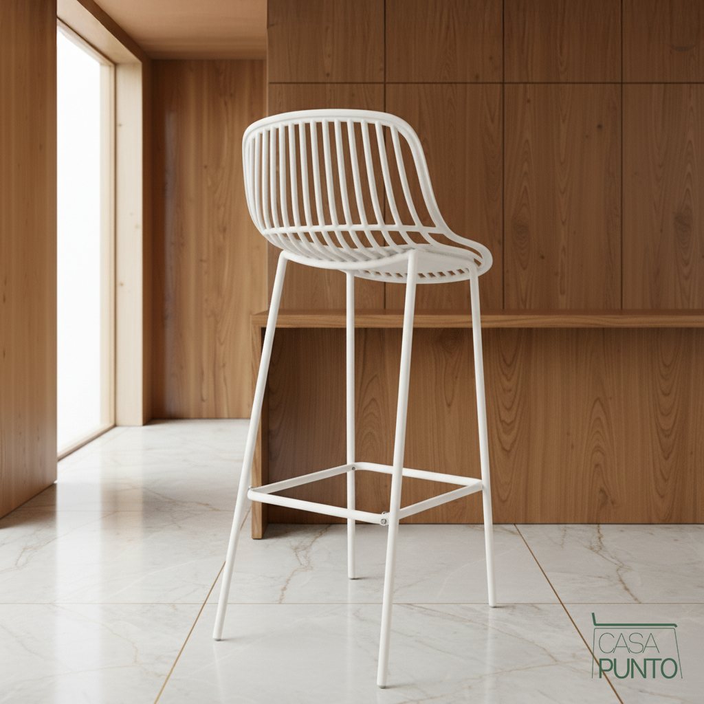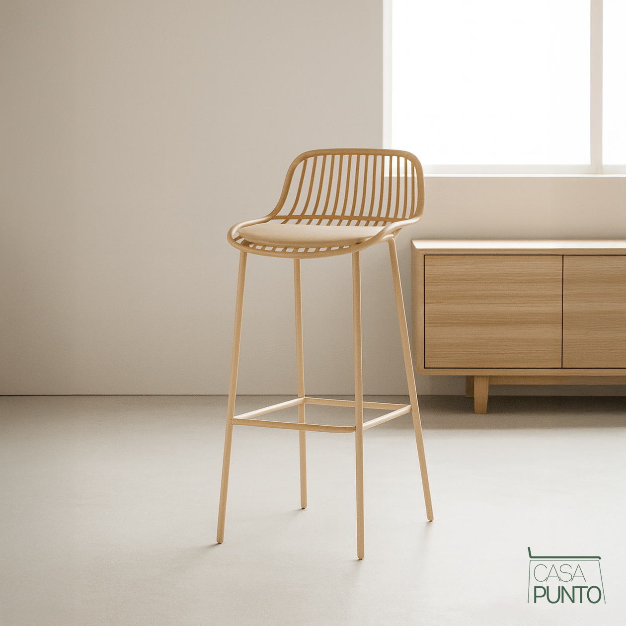 Aporta elegancia nórdica a tu comedor con el taburete de bar Kerstin de la colección CASA PUNTO. Esta trona combina un diseño escandinavo minimalista con una construcción metálica duradera, creando un equilibrio perfecto entre estilo y funcionalidad.