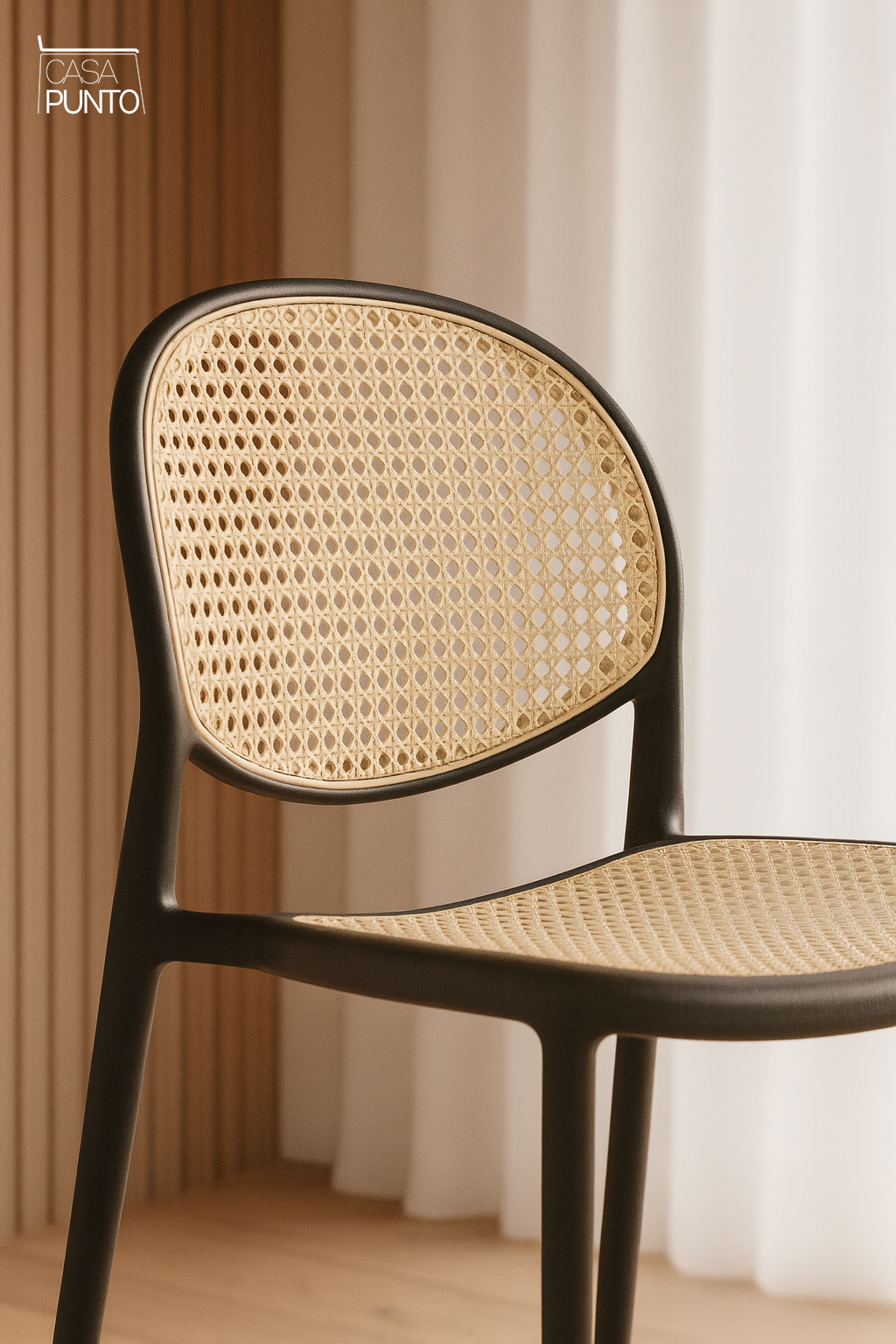 - El elegante respaldo tejido de ratán sintético crea una estética clásica de cafetería europea