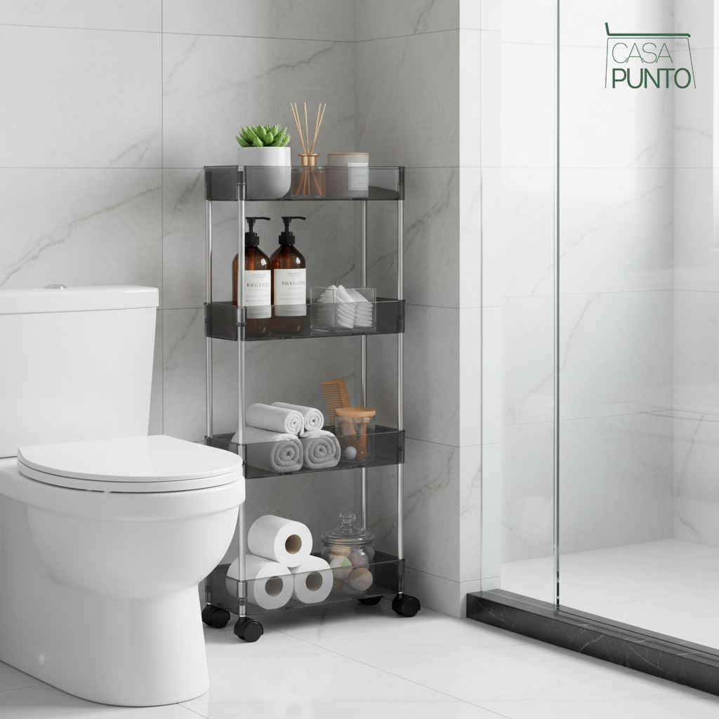 Maximiza cada centímetro de tu espacio con almacenamiento inteligente. El carrito con ruedas delgado de 4 niveles Dulce de la colección CASA PUNTO es la solución ultra estrecha que transforma los espacios desperdiciados en minas de oro de almacenamiento organizado. Este no es solo un carrito: es tu arma secreta para conquistar esos frustrantes espacios estrechos entre electrodomésticos, muebles y paredes.