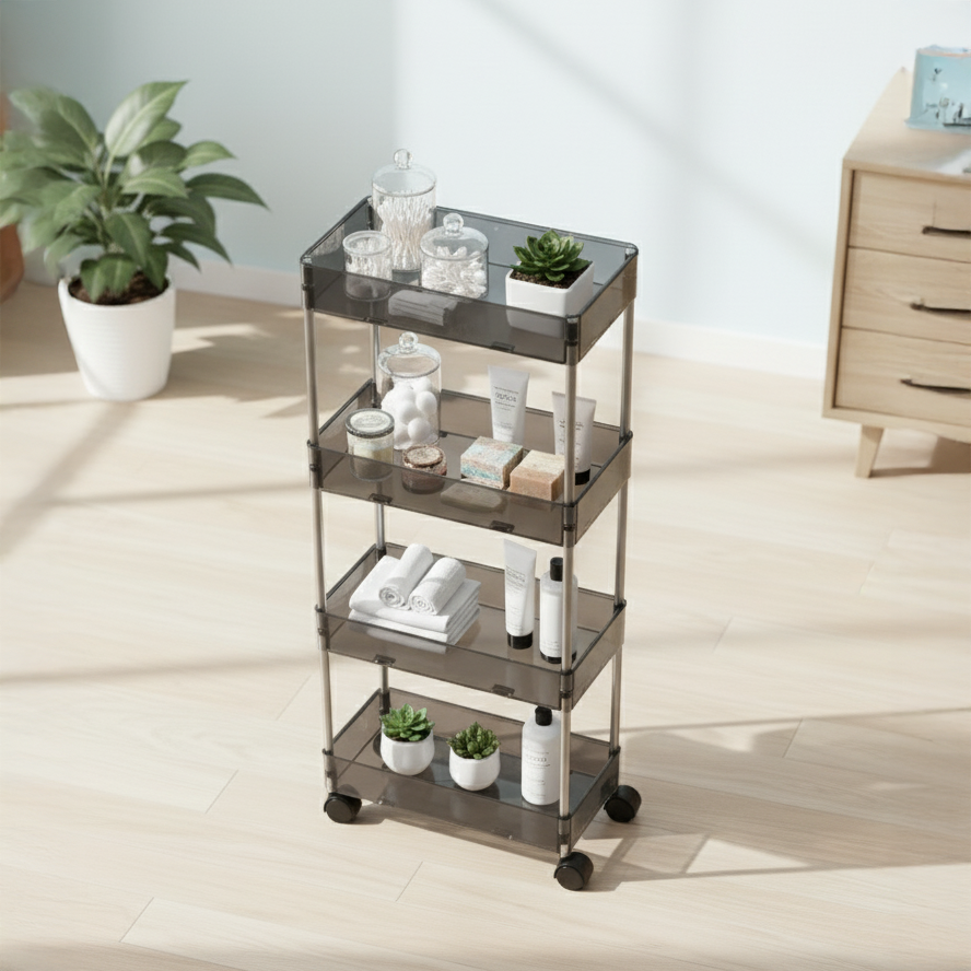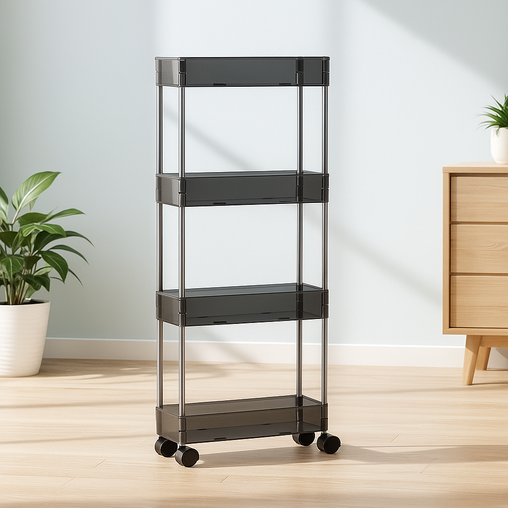 Con solo 13 cm de ancho, este elegante carrito translúcido se desliza sin esfuerzo en los espacios más estrechos y proporciona cuatro generosos niveles de almacenamiento. El diseño translúcido de color gris humo le permite ver el contenido de un vistazo, mientras que las ruedas giratorias de rodamiento suave facilitan el acceso. Perfecto para cocinas, baños, cuartos de lavado, salones u oficinas, este carrito versátil contiene especias, artículos de tocador, artículos de limpieza, materiales para manualidades y más. La construcción estilo malla promueve el flujo de aire y una fácil limpieza, mientras que la construcción de plástico duradero resiste la humedad y el desgaste diario.