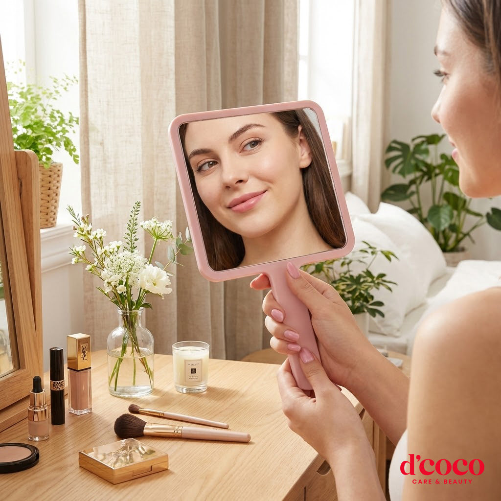 Espejo con mango de fábrica, espejo de mano creativo de tamaño cuadrado, espejo de belleza que se puede imprimir, espejo con mango LG, espejo publicitario