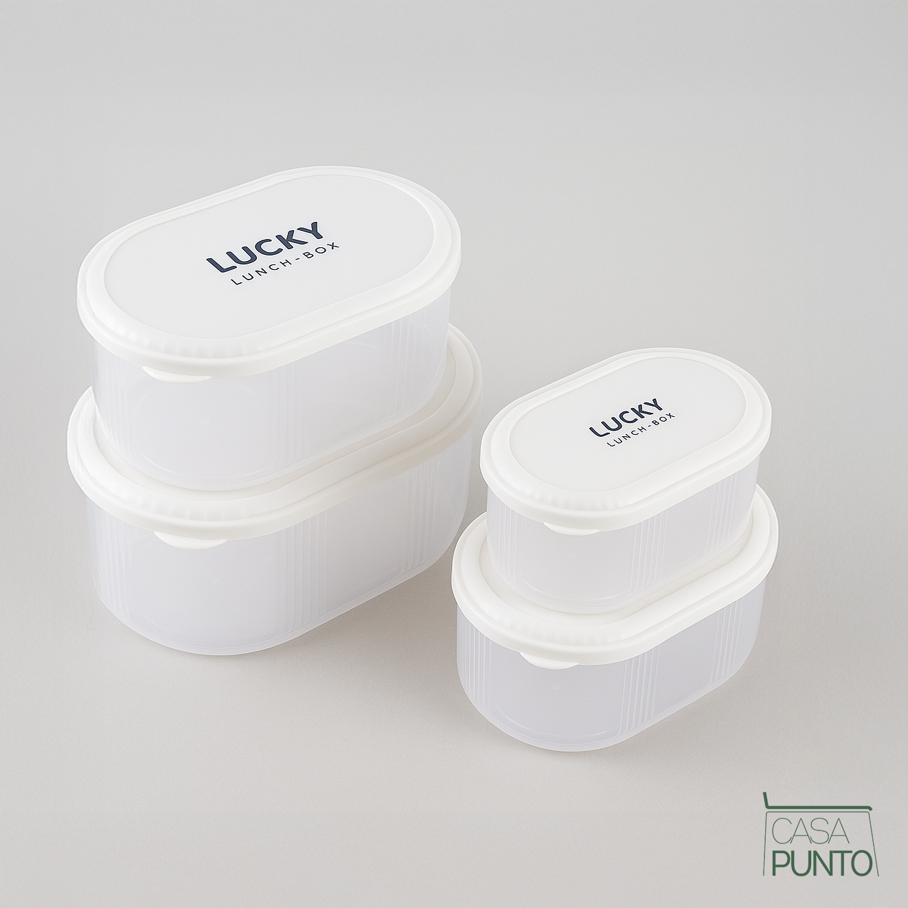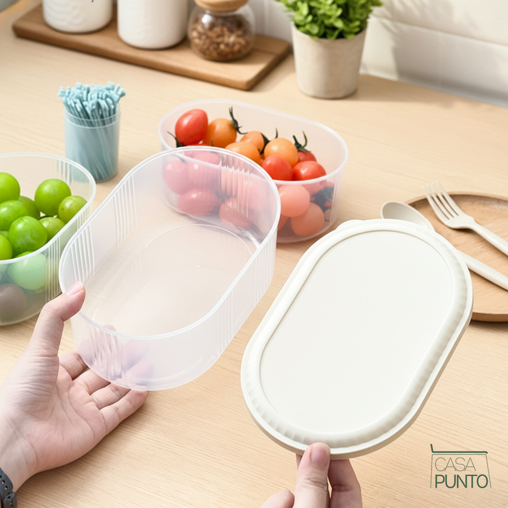 Conserva la frescura y organiza tu cocina con confianza. El juego de almacenamiento de alimentos ovalado Lucky de 4 piezas de la colección CASA PUNTO es la solución resistente que su cocina estaba esperando. Estos no son recipientes endebles que se agrietan después de algunos usos: están fabricados con plástico grueso y duradero sin BPA que resiste el uso diario, la congelación y el recalentamiento.