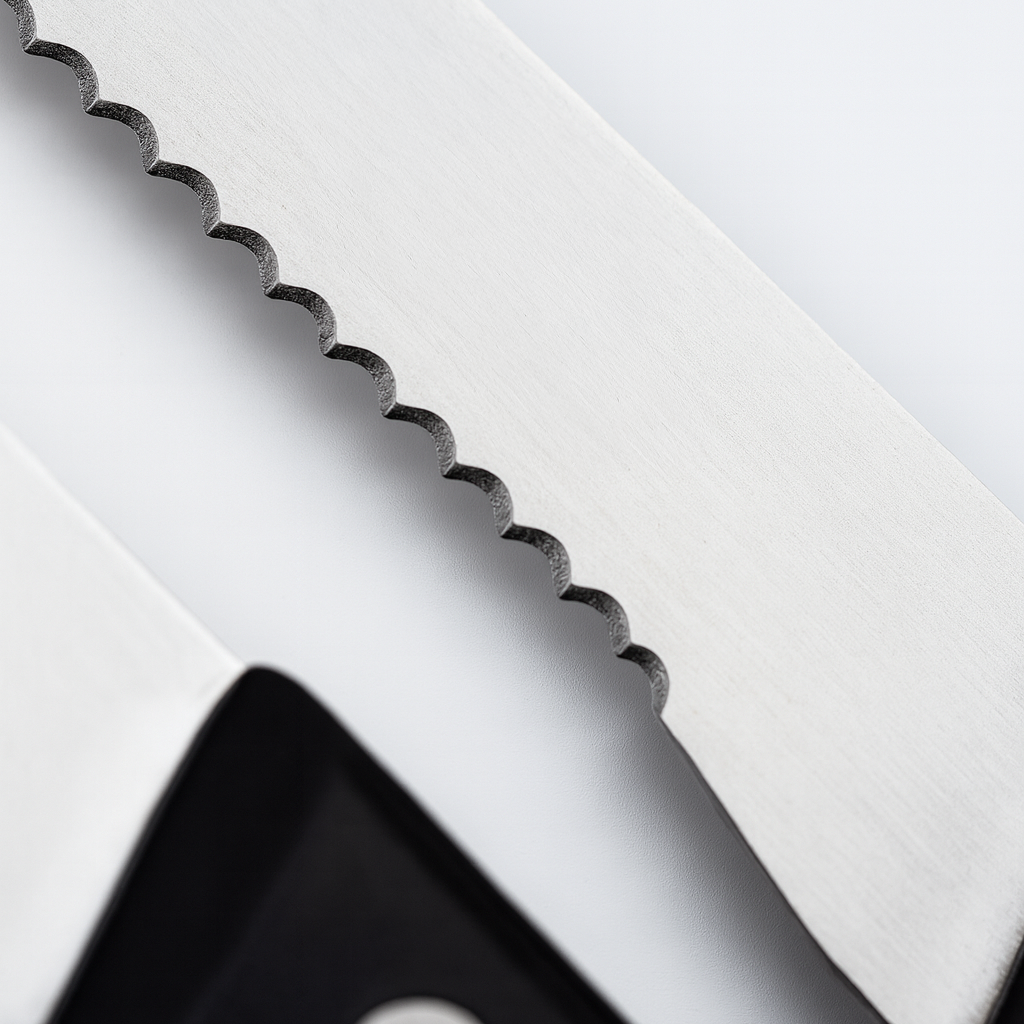 Con hojas dentadas de acero inoxidable con alto contenido de carbono y mangos clásicos negros de triple remache, este juego ofrece un rendimiento de corte excepcional para todas sus necesidades gastronómicas. El borde dentado se desliza a través de filetes, asados, barbacoas y carnes a la parrilla sin romperse ni desmenuzarse, mientras que los mangos ergonómicos con triple remache brindan un agarre cómodo y seguro. El acabado negro atemporal complementa cualquier mesa, desde cenas familiares informales hasta eventos elegantes. Perfecto para amantes de la carne, entusiastas de la barbacoa, cenas, registros de bodas o cualquier persona que aprecie los cubiertos de calidad profesional en la mesa del comedor.
