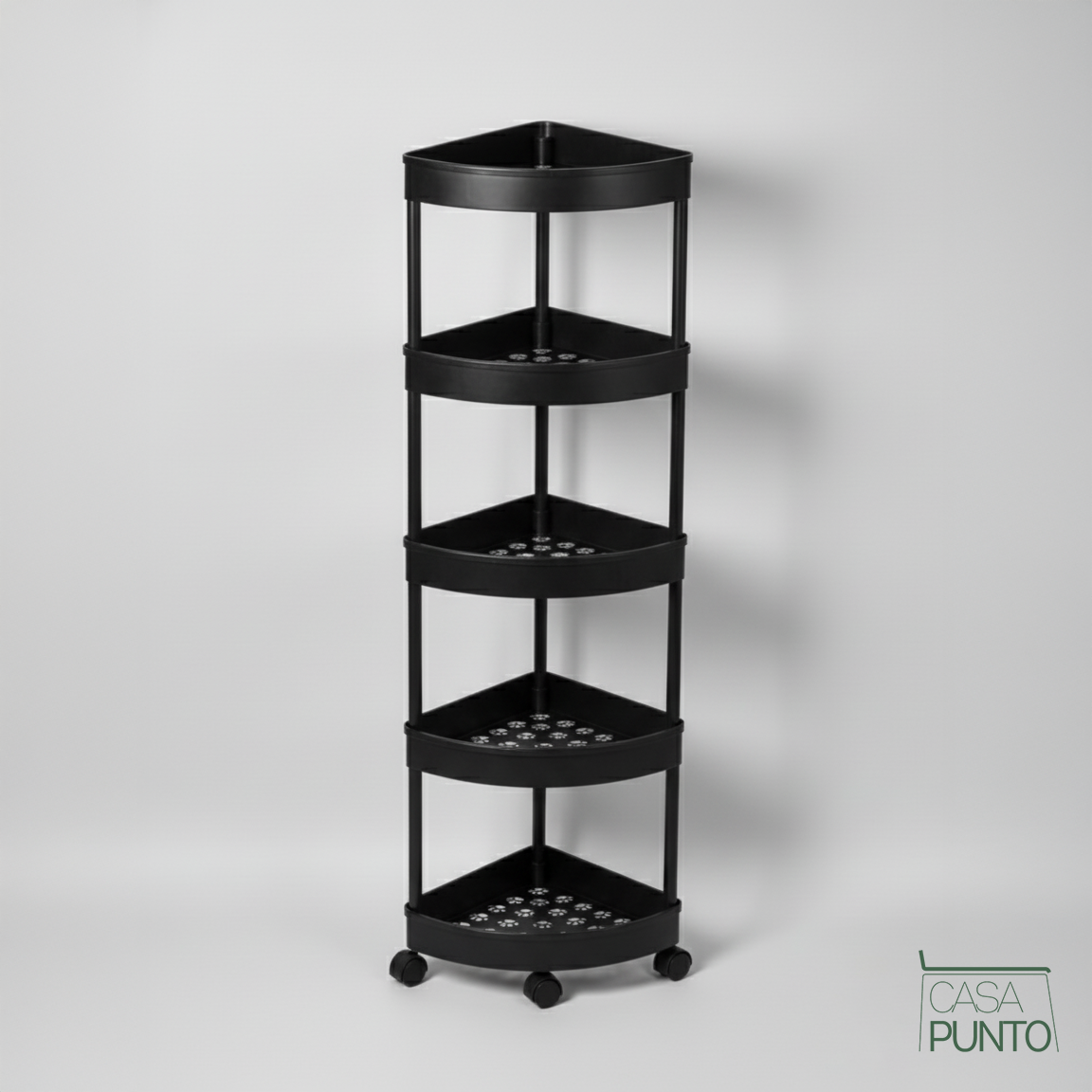 Transforma los rincones no utilizados en centros de almacenamiento organizados. El estante esquinero móvil de 5 niveles Hodun de la colección CASA PUNTO es la solución definitiva para ahorrar espacio que maximiza el almacenamiento vertical en espacios reducidos con un diseño triangular inteligente. Este no es solo un estante de esquina: es un completo sistema de organización móvil con cinco niveles espaciosos, ruedas de rodamiento suave y un elegante acabado blanco que aporta orden y estilo a su cocina, baño, cuarto de lavado o cualquier rincón que necesite almacenamiento inteligente.