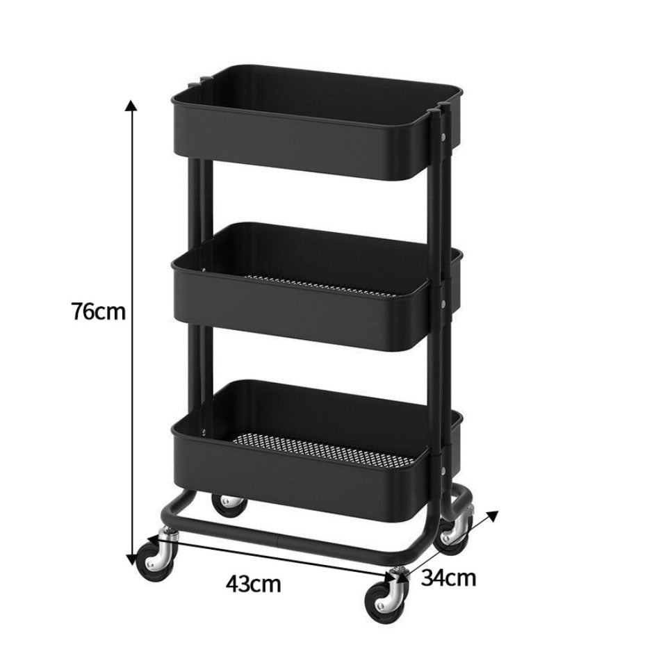1 carrito utilitario con ruedas de 3 niveles | Estructura metálica | Cestas estilo malla | 4 ruedas giratorias de rodamiento suave | Herramientas de montaje e instrucciones incluidas