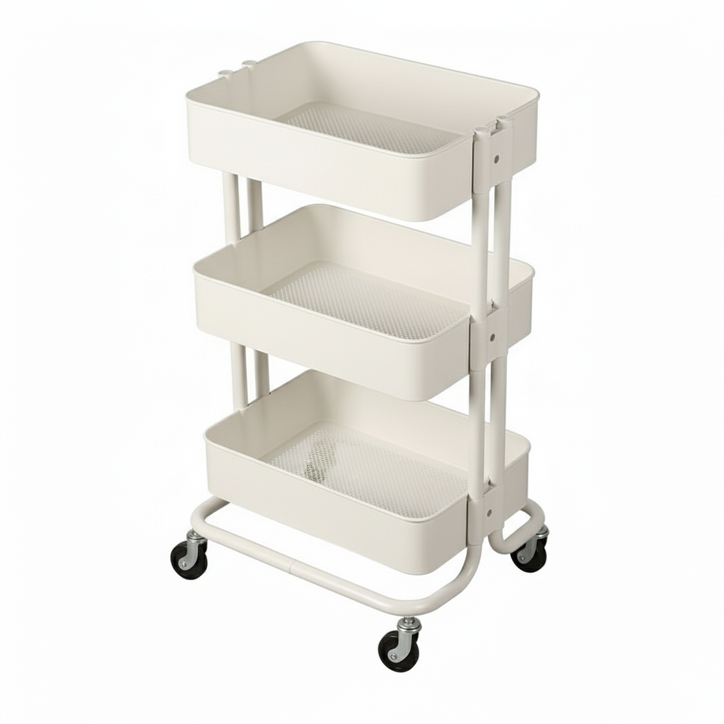 Con un marco de metal resistente con tres espaciosos niveles estilo malla, este carrito contiene de todo, desde elementos esenciales de cocina hasta artículos de belleza, materiales para manualidades y equipo de oficina. Las ruedas giratorias de rodamiento suave hacen que sea fácil moverse de una habitación a otra, mientras que el diseño de malla abierta mantiene el contenido visible y ventilado. El elegante acabado blanco complementa cualquier decoración y su tamaño compacto maximiza el almacenamiento sin consumir un valioso espacio. Perfecto para apartamentos pequeños, dormitorios, salones de belleza o cualquier persona que necesite almacenamiento móvil y flexible que luzca tan bien como funcione.