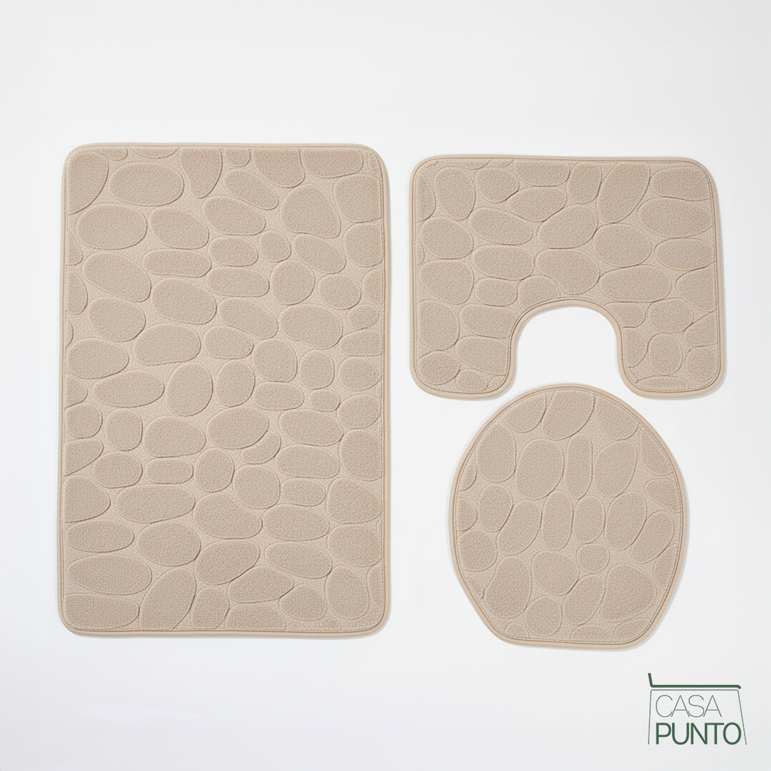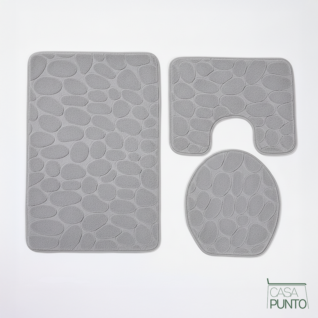 Transforme su baño en un lujoso santuario de spa con la lujosa comodidad de la espuma viscoelástica. El juego de alfombrillas de baño de espuma viscoelástica Lena de 3 piezas de la colección CASA PUNTO es la solución completa para pisos de baño que aporta suavidad como una nube y un estilo sofisticado a las áreas de baño, inodoro y lavabo. Este no es solo un juego de alfombrillas de baño, es un sistema integral de comodidad para el piso con textura de guijarros en 3D, acolchado de espuma viscoelástica y microfibra súper absorbente que mima tus pies mientras protege tus pisos. cubierta y tapete para fregadero para una cobertura completa del baño. La amortiguación de espuma viscoelástica proporciona una comodidad similar a la de una nube bajo los pies, mientras que la microfibra superabsorbente elimina rápidamente la humedad. El respaldo antideslizante mantiene los tapetes en su lugar de forma segura, y el sofisticado color gris perla con textura de guijarros en relieve agrega elegancia inspirada en un spa a cualquier baño. Perfecto para baños principales, baños de visitas, diseños inspirados en spas, quienes buscan comodidad o cualquier persona que desee la lujosa suavidad de la espuma viscoelástica con un estilo coordinado en su baño.