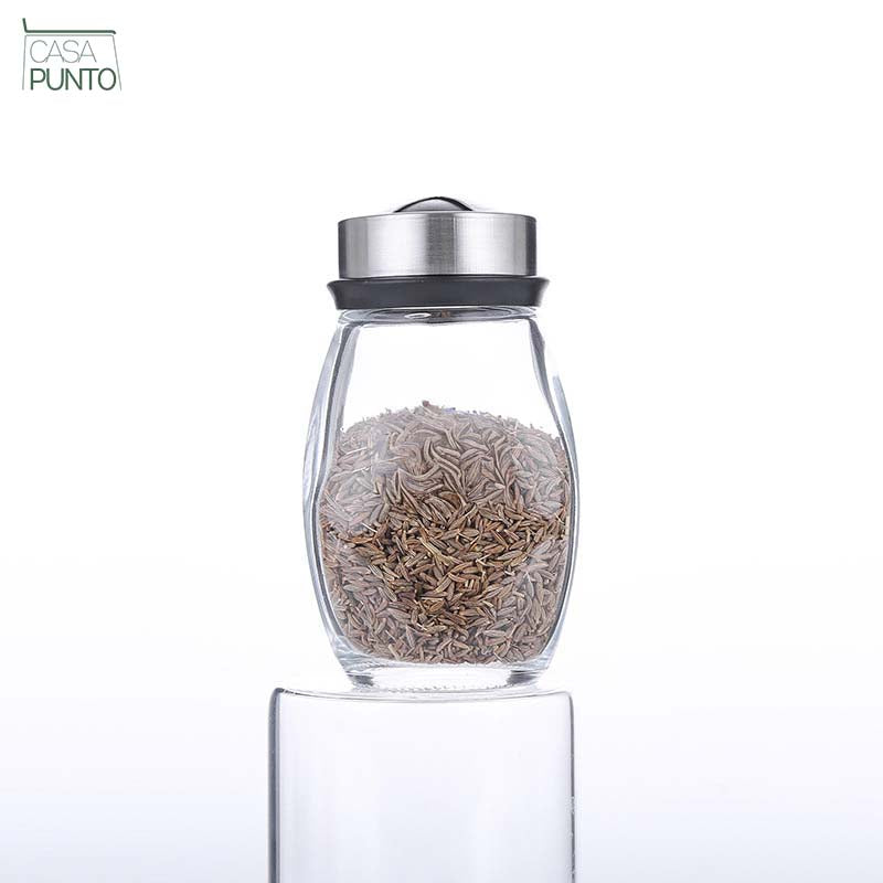 - 7 frascos de vidrio transparente exhiben las especias de manera hermosa y las mantienen frescas