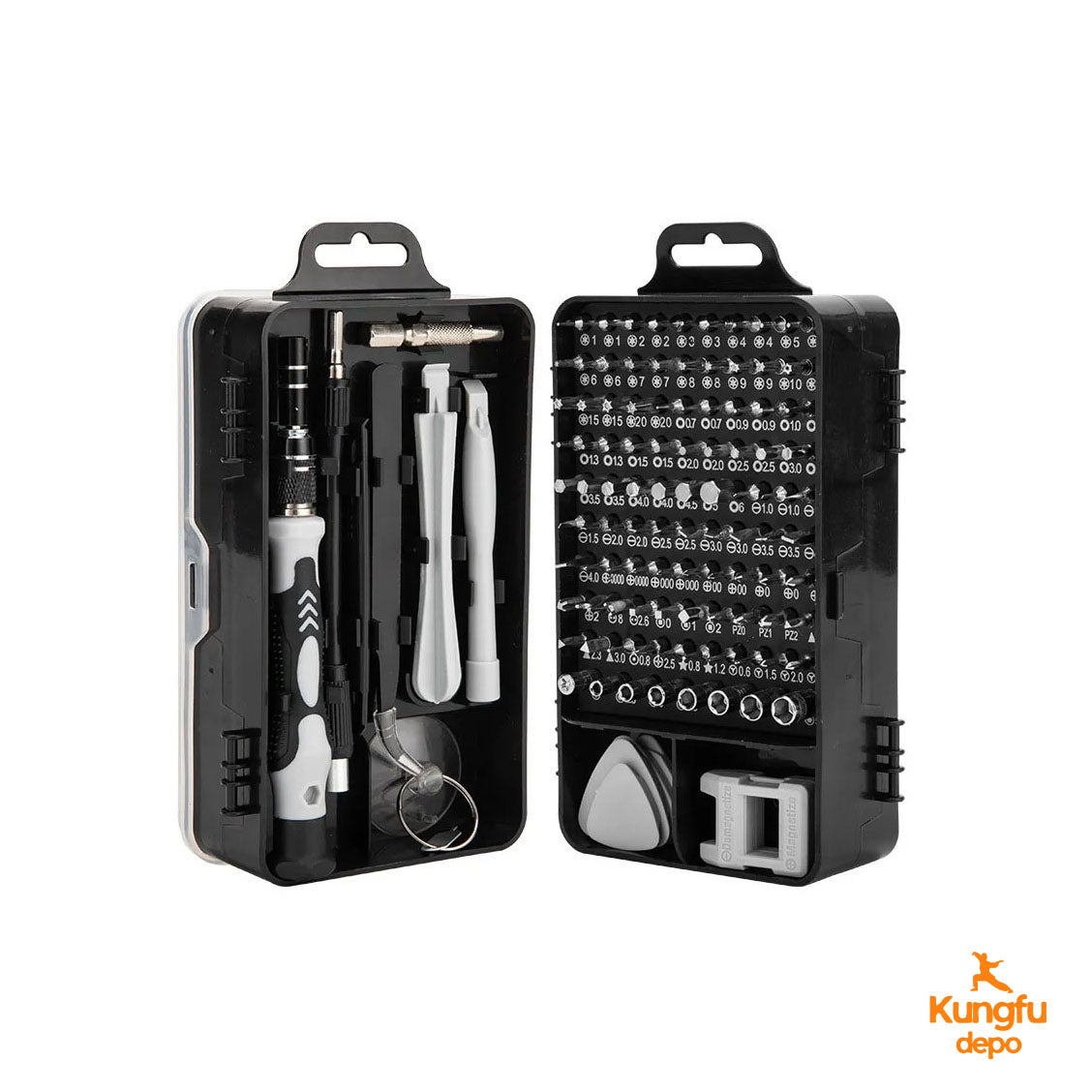 El práctico kit de herramientas de destornillador de precisión 115 en 1 es su solución completa para reparación y mantenimiento de productos electrónicos. Con puntas magnéticas y herramientas de precisión, aborde con confianza cualquier proyecto, desde reparaciones de teléfonos móviles hasta mantenimiento de portátiles.