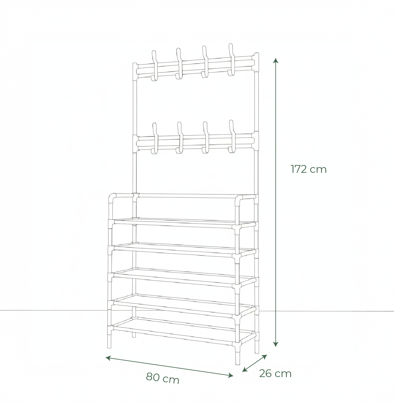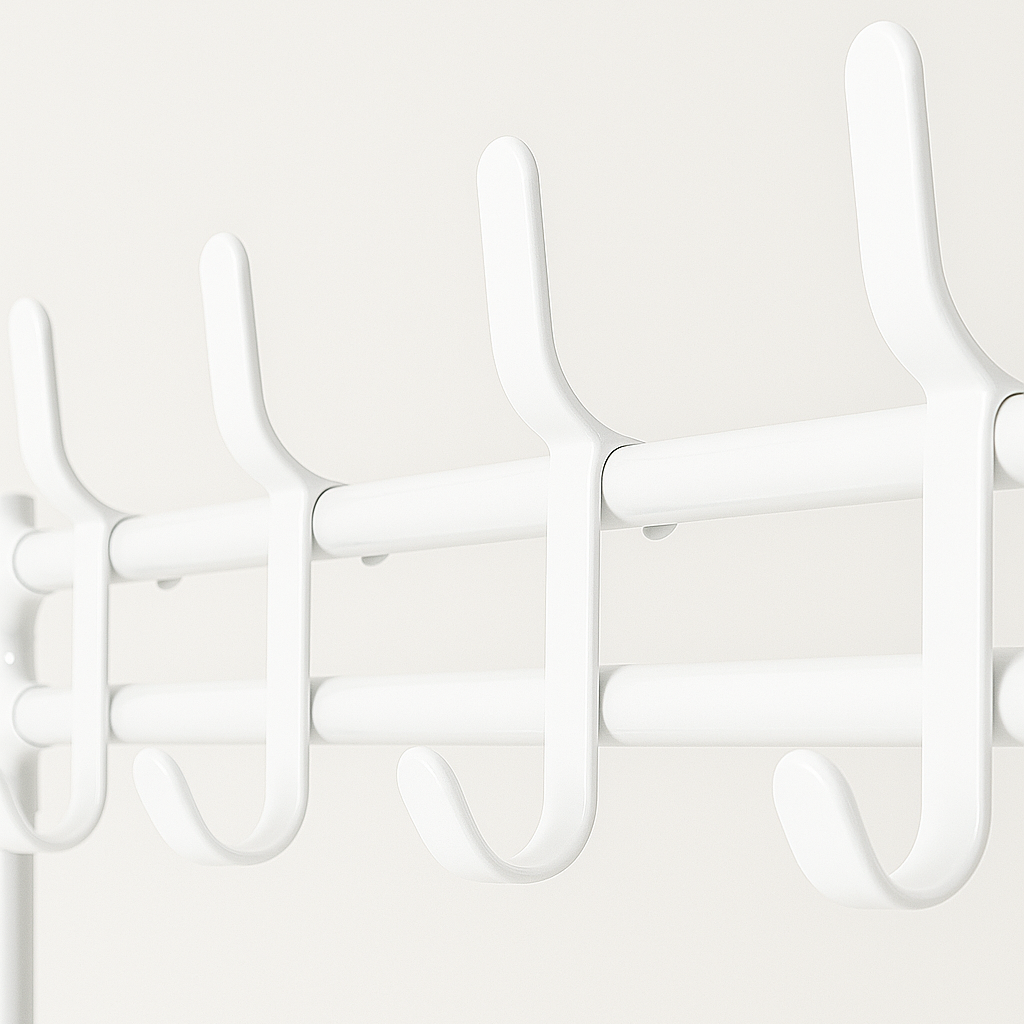 Con un marco de metal resistente con 8 ganchos para abrigos, bolsos y sombreros, además de 4 niveles espaciosos para zapatos y accesorios, este organizador versátil se encarga de todo lo que su familia le depare. El diseño abierto promueve el flujo de aire para mantener los zapatos frescos, mientras que la construcción liviana facilita el montaje y el reposicionamiento. Perfecto para apartamentos, dormitorios, propiedades de alquiler o cualquier hogar que necesite almacenamiento inteligente en la entrada sin instalación permanente. Por solo una fracción del costo de los armarios empotrados, Borg ofrece organización profesional con simplicidad de bricolaje.