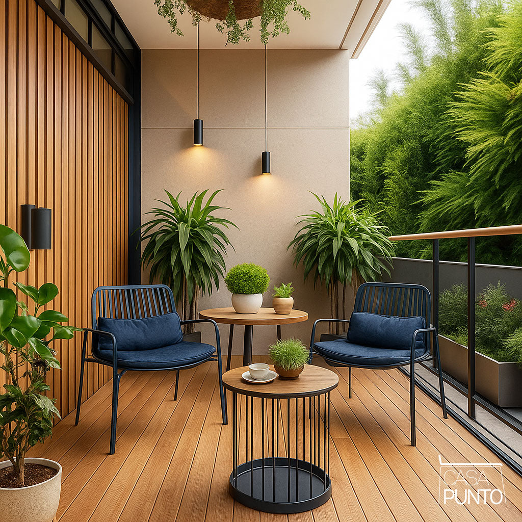 - El estilo de inspiración nórdica complementa balcones, patios y espacios al aire libre