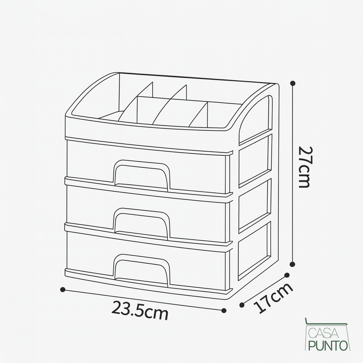 Transforma tu escritorio en un santuario organizado con el organizador de 3 cajones Vigi. Di adiós a las encimeras abarrotadas y saluda a un sistema bellamente organizado donde todo tiene su lugar y puedes encontrar lo que necesitas de un vistazo.
