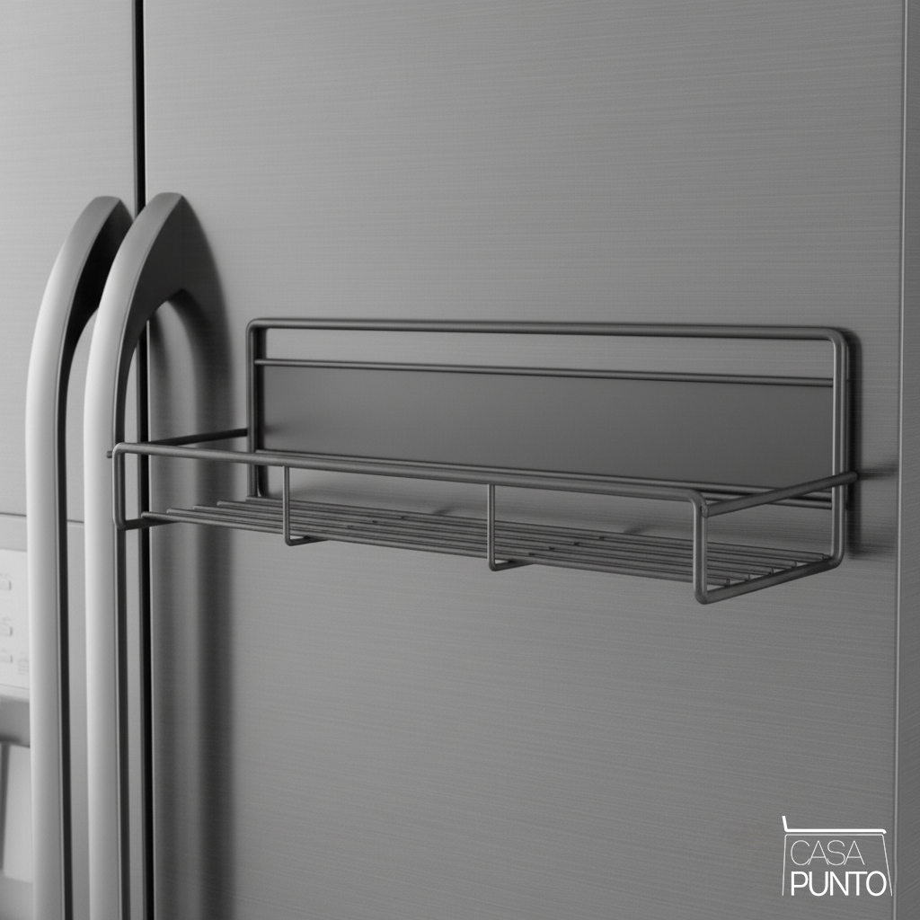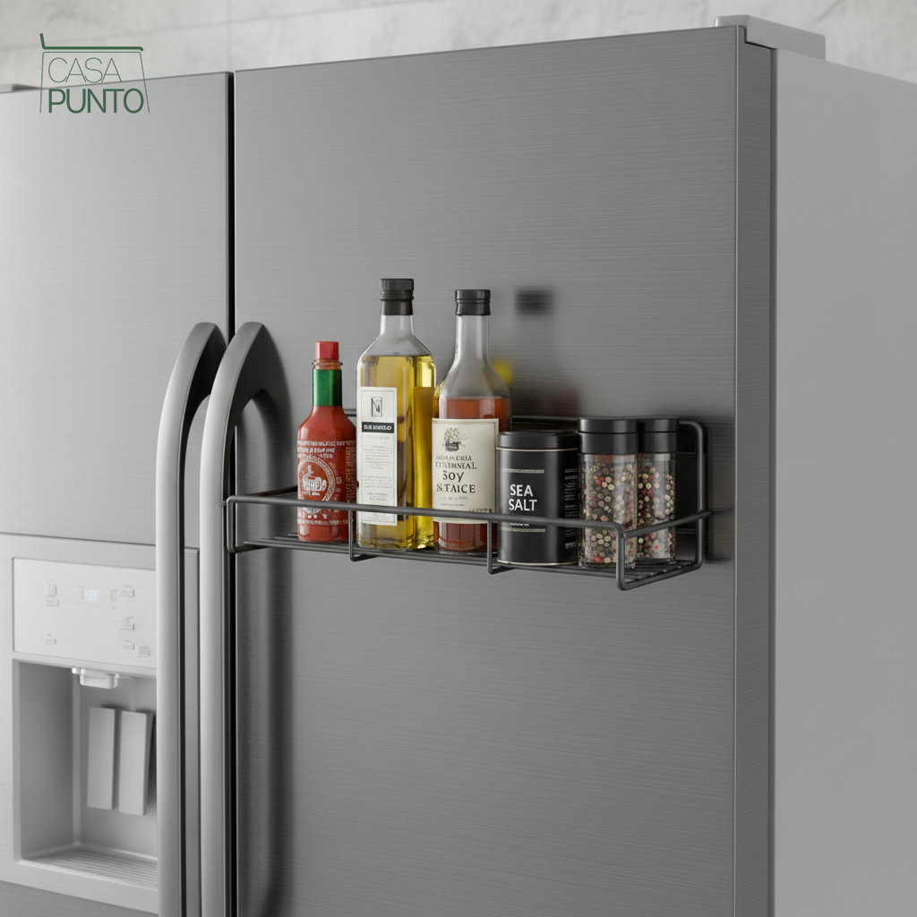 - El potente respaldo magnético se fija de forma segura a los lados del refrigerador sin perforar ni dañar